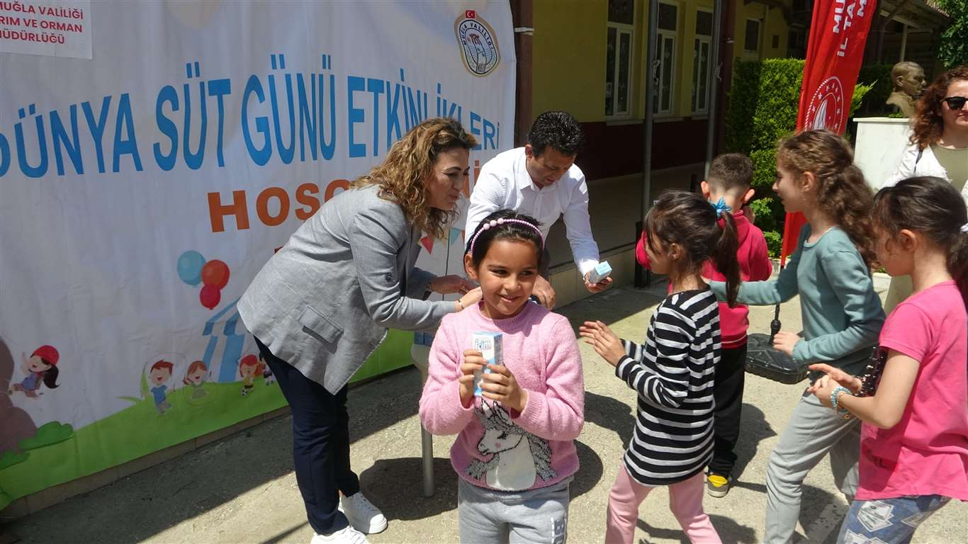 Muğla'da 1 Haziran Dünya Süt Günü nedeniyle Tarım ve Orman İl Müdürlüğü tarafından düzenlenen etkinlikte öğrencilere süt dağıtıldı.